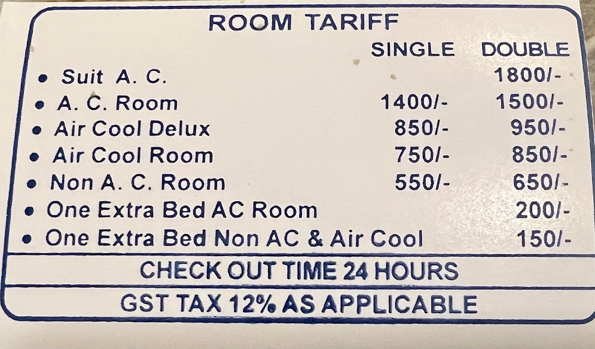 Room service is good and attentive. Both hot and cold water available for daily chores. Cost effective, in my case it cost me Rs.850 for 2 persons or (Rs1000 for 3 persons). Dinning is also available.